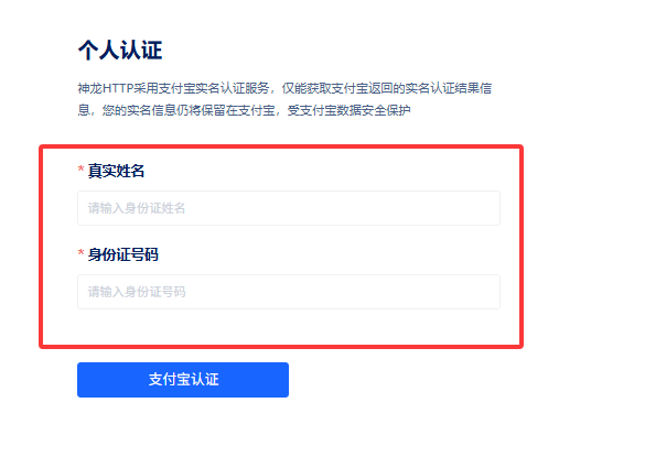 2、输入身份证姓名及身份证号码,生成二维码使用支付宝扫描认证。认证通过后,平台账户标记为“个人认证”。