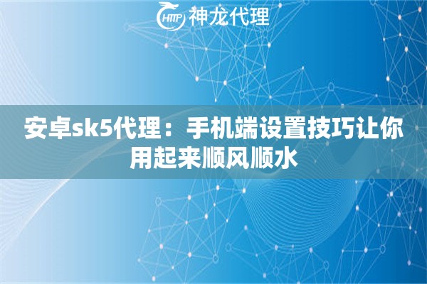 最近不少朋友在问:“用安卓手机搞SK5代理到底怎么玩?”尤其是做数据采集、电商运营或者需要多IP切换的场景,一个稳定的代理ip服务确实能省不少事。今天就手把手教大家怎么用安卓手机设置SK5代理,顺便安利下咱们国产的神龙HTTP服务,全程干货不绕弯子!