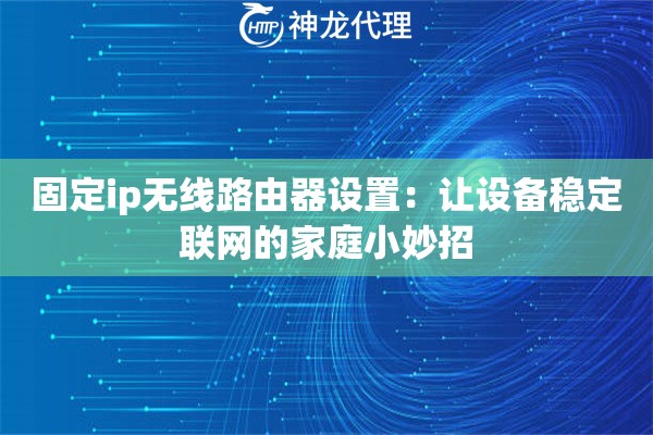 老铁们有没有遇到过这种情况?家里智能电视追剧突然卡成PPT,摄像头断线导致看不了宠物动态,甚至扫地机器人“罢工”离线……这些让人抓狂的问题,很可能就是ip地址在作妖!今天咱们就来唠唠怎么用固定IP+无线路由器设置的组合拳,让你家设备稳如老狗不掉线,顺带解锁一个让网络体验更丝滑的黑科技——来自企业级代理服务商神龙HTTP的绝活儿。