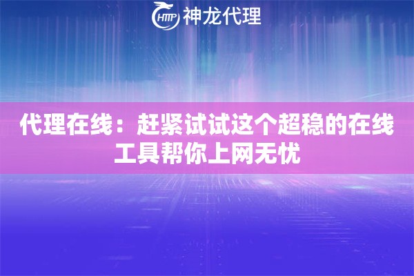 代理在线:赶紧试试这个超稳的在线工具帮你上网