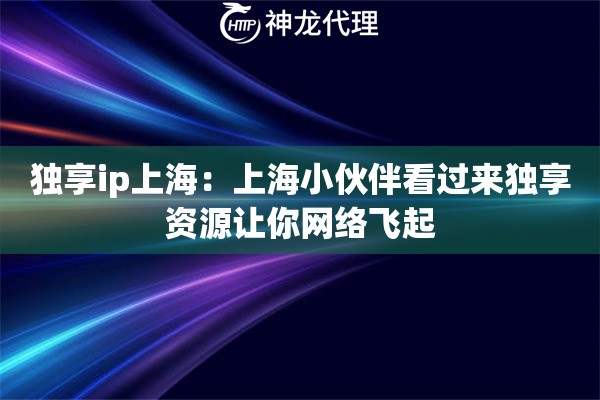 独享ip上海:上海小伙伴看过来 独享资源让你网络飞起