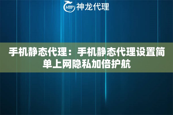 手机静态代理设置教程:3分钟学会隐藏真实IP