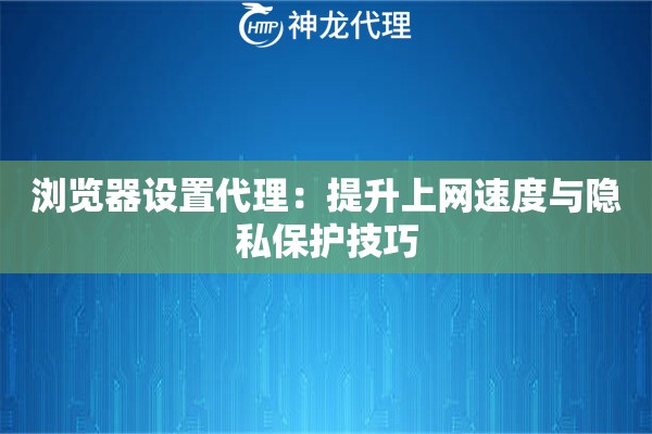 浏览器设置代理ip:手把手教你提升网速还能当个"隐形人"