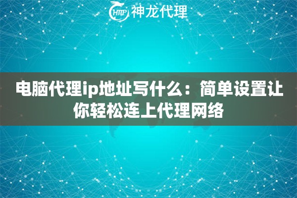 电脑代理ip设置教程:手把手教你3分钟搞定网络切换