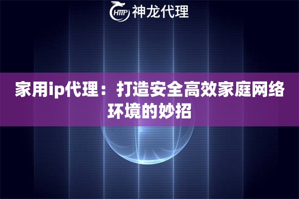 在智能家居普及率超过75%的今天,家庭网络安全防护已不是选择题而是必答题。通过专业的代理IP服务,既能构筑家庭数字生活的安全防线,又能显著提升网络使用效率。神龙HTTP作为深耕行业多年的技术服务商,其企业级代理架构经过金融、教育等行业验证,完全能够满足家庭场景的高标准需求。下次当家里的摄像头突然掉线,或者网课直播频繁卡顿时,不妨试试这个藏在手机设置里的安全卫士。