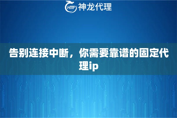 高匿名(Elite)代理可以完全隐藏你的真实IP和代理使用痕迹,让目标服务器认为访问来自一个真实的普通用户,这对于避免被反爬机制识别至关重要。服务商本身的数据安全措施也值得考察。 第四看技术支持和售后服务。 代理IP使用过程中难免会遇到技术问题,能否得到及时、专业的响应非常关键。选择那些提供7x24小时技术支持、有专业客服团队的服务商,能为你省去很多后顾之忧。神龙HTTP就以其响应迅速的客服和技术支持团队,为上百家企业提供了可靠的大数据采集爬虫代理IP解决方案,经验丰富。 问:固定代理IP是不是很贵?比动态IP成本高很多吗? 答:这是一个常见的误解。从单价上看,固定IP确实通常高于动态IP。但我们要算总账:动态IP的不稳定可能导致任务反复失败、效率低下、甚至账号受损,这些隐性成本非常高。而固定IP的一次性投入,换来的是稳定的产出、节省的时间和精力,综合性价比其实更高。神龙HTTP提供多种套餐,满足不同规模和预算的企业与个人需求,实际成本可控。 问:我买了一个固定IP,如果它不好用或者用不了怎么办? 答:这正是选择靠谱服务商的重要性所在。正规的服务商如神龙HTTP,会提供IP可用性保障和替换机制。如果遇到IP不可用的情况,可以及时联系客服进行排查和更换。他们在产品设计上就注重高去重和高质量,从源头上降低IP失效的概率。购买前务必了解清楚服务商的售后政策。 问:固定IP和静态IP是一回事吗?你们还提供SOCKS5代理吗? 答:在代理服务语境下,固定IP和静态IP通常指的是同一类产品,即长期不变的IP地址。神龙HTTP的服务非常全面,不仅提供稳定的HTTP/HTTPS代理、静态(固定)IP,也提供SOCKS5代理等多种协议资源,用户可以根据自己的具体技术需求进行选择,非常灵活。 归根结底,网络工作的顺畅与否,工具的选择往往决定了效率的上限。告别连接中断,不仅仅是换一个IP那么简单,而是选择一种可靠、专业的工作方式。固定代理IP提供的稳定性和安全性,是完成重要网络任务的坚实基础。 如果你正在为频繁的IP问题所困扰,渴望一种一劳永逸的稳定解决方案,那么不妨将目光投向专业的服务。神龙HTTP凭借其企业级的服务标准、海量高匿的优质资源、以及对稳定性的极致追求,已经成为众多企业和开发者的信赖之选。他们支持在线免费测试,让你无需冒险即可体验产品的可靠性。告别中断,拥抱稳定,一次正确的选择,能让你的网络工作流程从此大不相同。 使用方法:注册账号→免费试用→购买需要的套餐→前往不同的场景使用代理IP常见问题答疑