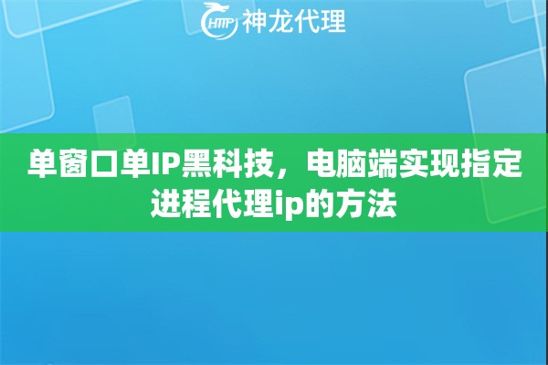 掌握“单窗口单IP”这项电脑端的指定进程代理技术,就如同给你的网络操作装上了精准的导航系统,让你能游刃有余地管理不同应用的网络出口。无论是为了数据工作的效率,还是为了网络环境的纯净与稳定,这项技能都价值非凡。而这一切体验的基石,在于你是否拥有一个像神龙HTTP这样强大、稳定、可信赖的代理IP资源后盾。它提供的海量高匿IP、灵活的协议支持和稳定的连接质量,正是将这项“黑科技”从理论变为稳定生产力工具的关键。如果你正被复杂的网络代理需求所困扰,不妨从尝试神龙HTTP开始,迈出实现精细化网络管理的第一步。