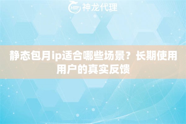 作为企业级HTTP代理IP服务商,神龙HTTP在服务众多客户的过程中发现,很多用户最初对代理IP的选择存在误区,直到用了静态包月IP,才真正解决了他们的核心痛点。那么,它到底适合谁?